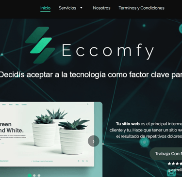 En Eccomfy creamos páginas hechas a tu medida: modernas, seguras y con todo incluido (dominio, hosting y mantenimiento), para que vos no tengas que preocuparte por nada.